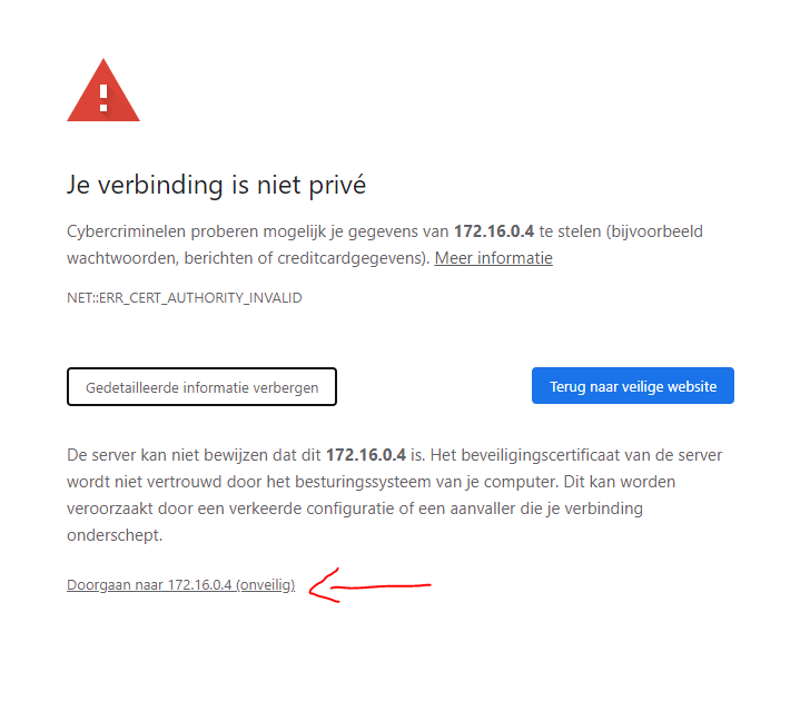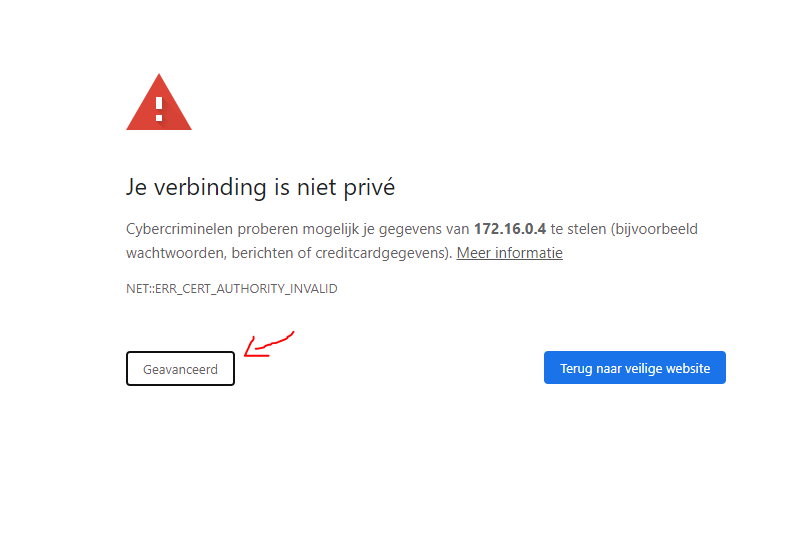 Je krijgt volgende melding wanneer je naar het beheerplatform van de verwarming surft.